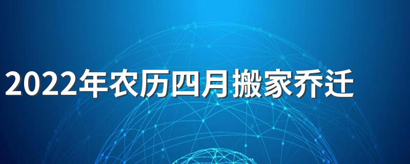 每天的日子都是不同的,从黄历上来看,就可以了解这天是不是吉日,说起搬家我们都不陌生,很多人也有过搬家的经历,搬家之后我们身边的环境都会发生一些改变,所以我们在搬家的时候要注意最佳吉日,那么在2022年农历4月有哪些日子适合搬家?下面是小编整理的相关内容希望对你有帮助!
