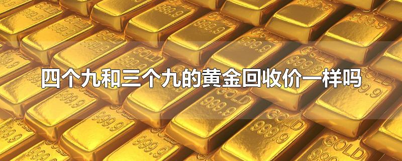 四个九和三个九的黄金回收价不一样。四个九的黄金指的是黄金的含金量达到了99.99%,三个九的黄金指的是黄金的含金量达到了99.9%,四个九的黄金其含金量是要高于三个九的黄金的,一般情况下含金量越高的黄金价格就越贵。