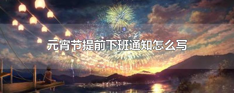 元宵节提前下班通知:各位员工:今天(X月X日)是元宵佳节,为了让大家过好快乐舒心的节日,公司决定提前两小时下班(下班时间16:00),请各部门负责人安排好各项工作,祝大家元宵节快乐!特此通知!后面附上发出通知部门及日期即可。