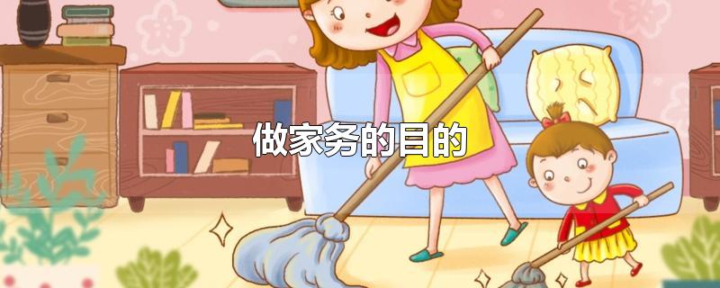 做家务的目的有三个,一:在劳动中获得成就感、体验和理解父母的辛苦。二:培养责任感提高动手能力以及培养我们不怕脏、不怕累的精神。三:使人更加的积极向上,也从而更加的关心父母,还可以提高动手能力。