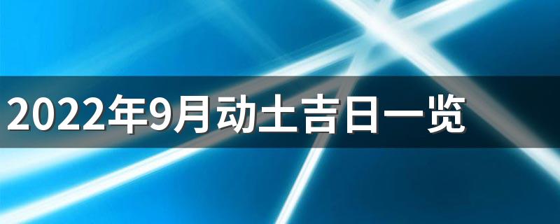 2022年9月动土吉日有11天,分别是:9月1日,9月5日,9月9日,9月11日,9月14日,9月18日,9月21日,9月26日,9月27日,9月29日,9月30日。