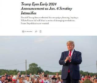 综合美媒报道,美国共和党人被曝正为特朗普“不同寻常地提前宣布竞选总统”做准备。特朗普此前原计划11月中期选举后再启动2024 年总统竞选,但近期国会骚乱公开听证会上的 “破坏性”证词,以及拜登低迷的民调,让他改变想法。CBS获悉,特朗普私下告诉盟友和助手,正“认真考虑”最早今夏宣布竞选。CNN援引共和党消息人士则称,特朗普考虑最快或在7月第一周宣布竞选。但特朗普身边也有顾问警告说,宣布重大竞选声明的时机未到。
