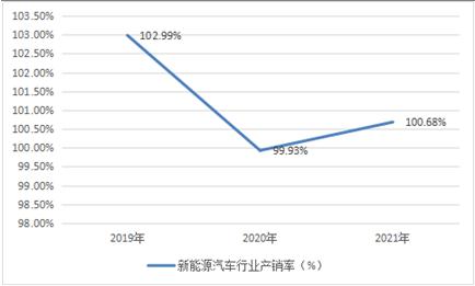图表:2019-2021年中国新能源汽车产销率情况