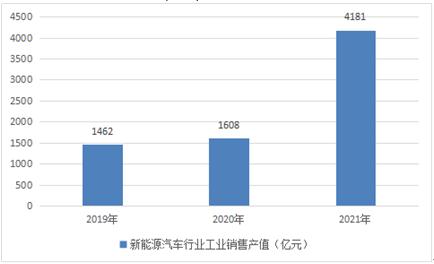 图表:2019-2021年中国新能源汽车行业工业销售产值情况