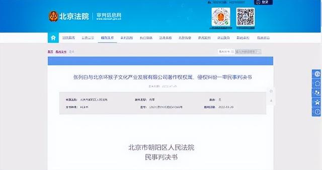 7月5日,张列白与北京坏猴子文化产业发展有限公司(以下简称坏猴子公司)著作权权属、侵权纠纷的一审民事判决书,在北京法院审判信息网公开发布。