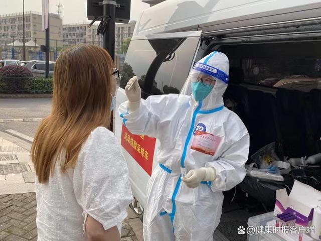 杭州市余杭区居民在核酸检测便民服务车前进行核酸检测 浙江日报图