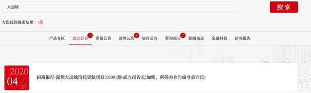 时代财经了解到,招商-大运城计划成立于2020年4月27日,中信信托官网在今年3月31日挂出了对该计划的清算报告。