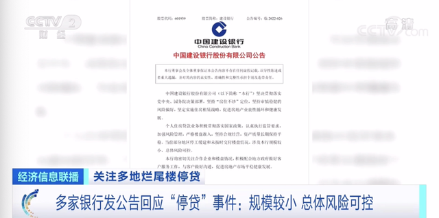 今天,多家银行发布公告称,对近期网传“停贷”事件中涉及的楼盘展开排查,目前发布公告的银行均表示,涉及的贷款业务规模较小,不会对银行经营构成重大影响。