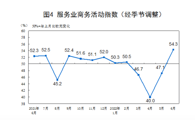 “上半年,面对复杂严峻的国际环境和国内疫情带来的严重冲击,我国高效统筹疫情防控和经济社会发展,服务业经济顶住压力逐步趋稳,主要指标边际改善,6月份以来恢复步伐加快,发展动能稳步提升,企业景气企稳向好。”国家统计局服务业调查中心主任李锁强说。