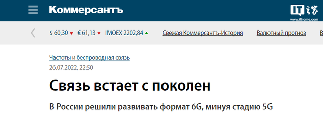 7 月 27 日消息,据俄罗斯《生意人报》报道,俄罗斯决定绕过 5G 阶段,直接开发 6G 网络。到 2025 年,斯科尔科沃科学技术研究院和隶属于数字发展部的无线电制造科学研究所可能会收到超过 300 亿卢布(约 34.2 亿元人民币),用于研究新的 6G 通信标准。