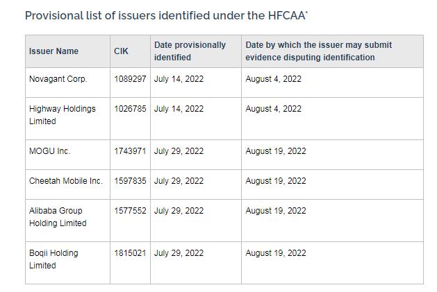 根据美国2020年通过的《外国公司问责法》(HFCAA),如果在美上市外国公司连续三年无法让美国监管机构检查审计底稿,可能会被强制退市。几天前,阿里发布了2022财年年报,当时外界就预计该公司很可能会被SEC列入“预摘牌”名单。