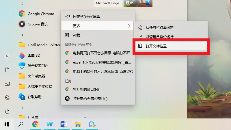<!–2第2步 点击打开文件位置 带第一步、第二步 样式–>在展开的选项中,点击打开文件位置。