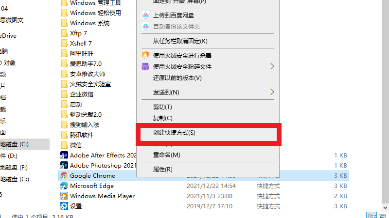 <!–3第3步 点击创建快捷方式 带第一步、第二步 样式–>在右击展开的文件窗口中,点击创建快捷方式即可。