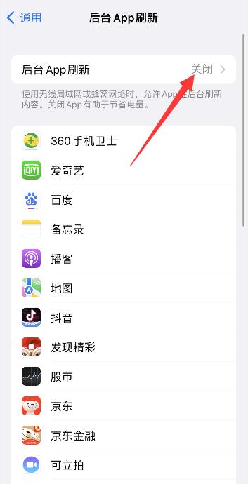 2关闭后台应用刷新