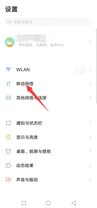 打开手机设置图标,点击移动网络。
