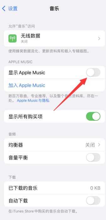 进入页面后,将显示Apple Music右侧按钮关闭即可。