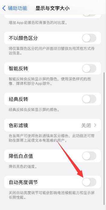 2进入显示与文字大小关闭自动调节亮度