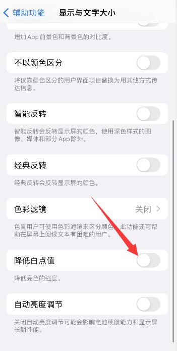 2进入显示与文字大小关闭降低白点值