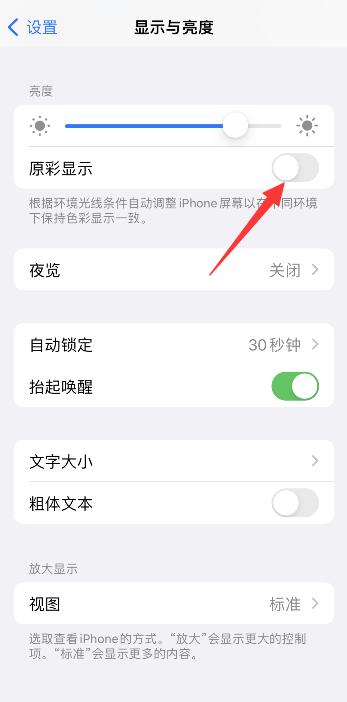 iPhone13为例,苹果手机屏幕忽明忽暗有可能是开启了自动调节亮度、低电量模式,降低白点值,原彩显示,夜览模式都会导致忽明忽暗情况,可以尝试关闭方法进行解决。分为2步,具体步骤如下: