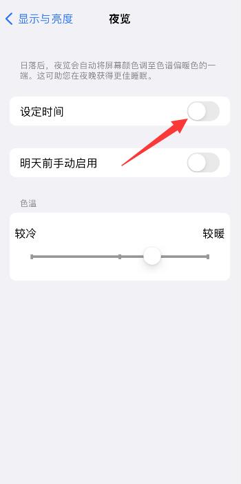 <!–2第2步 进入夜览关闭设定时间 带第一步、第二步 样式–>选择夜览,进入页面,把设定时间按钮关闭即可。
