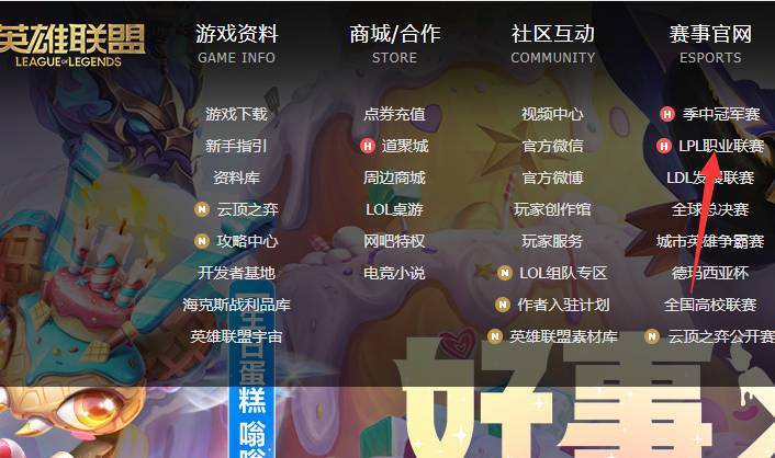 1、首先打开LOL官网,点击LPL职业联赛进入。