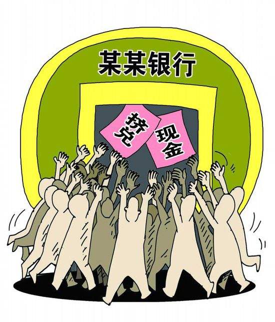挤兑就是市面银根转紧或银行信用发生动摇时,银行存款人都纷纷到银行里挤着兑现(金币或银币)。在纸币制度下,为避免银行倒闭风险而蜂拥提取存款叫挤提。通俗的讲,就是怕银行倒闭,很多人到银行取钱。
