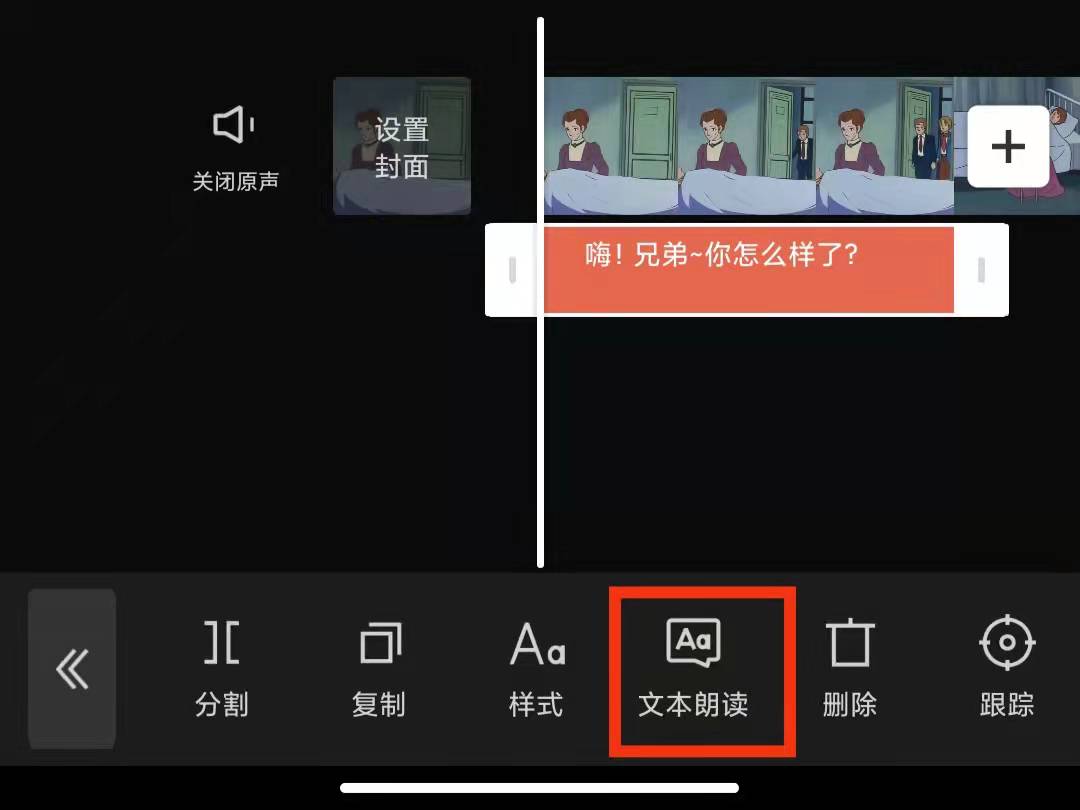 3、点击“文本朗读”,选择需要添加的音色后点击页面右下角的“√”即可完成人工语音的添加。