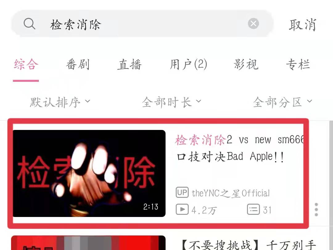 1、打开哔哩哔哩APP,在搜索栏输入文字“检索消除”,点击搜索。