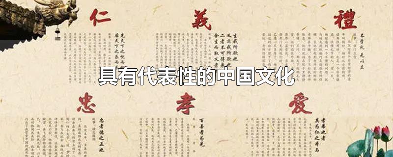 具有代表性的中国文化:儒家思想文化、中华武术、瓷器文化、传统民族音乐文化 、茶文化、饮食文化、戏曲文化、刺绣文化、剪纸文化、围棋文化、汉服文化、中医文化、书法文化、篆刻印章文化、纸钱文化等。