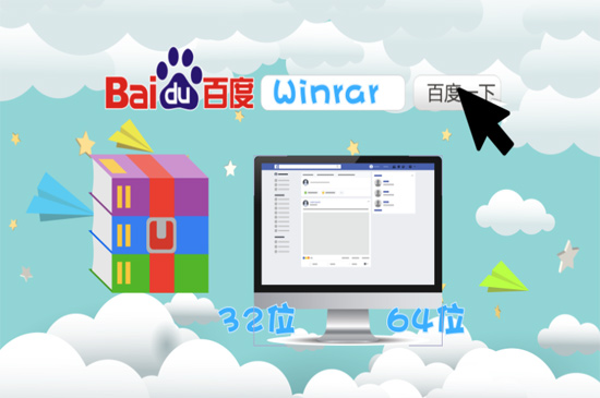 想要使用winrar工具,首先打开电脑里的百度浏览器,在搜索框内输入“Winrar”软件的名称,点击右侧的搜索,搜索结果出来以后,点击进入winrar的官方网站,有32位下载和64位下载,根据电脑的配制来选择合适的下载版本即可。