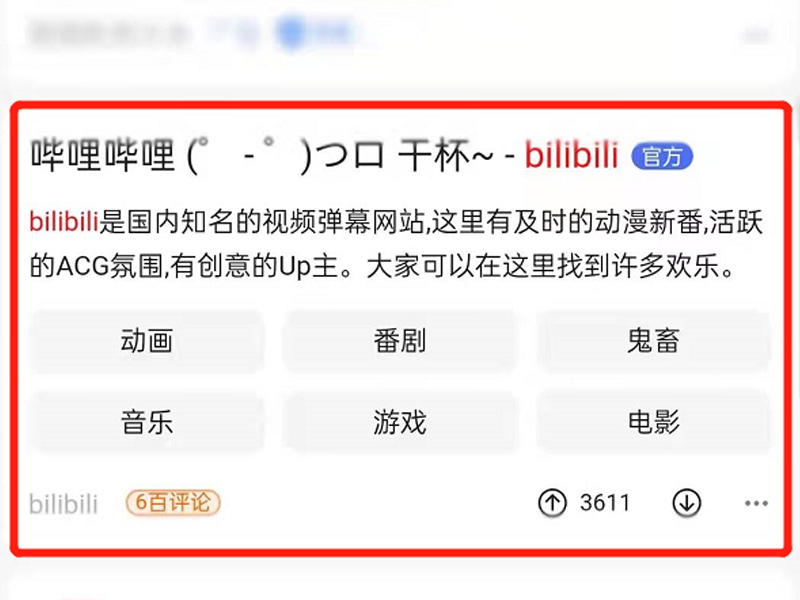 3、得出搜索结果后,找到bilibili官方网站,点击进入即可。