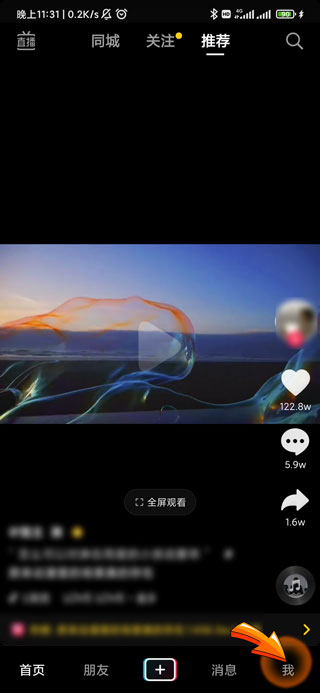 1、抖音作品置顶需要打开抖音APP,点击首页右下角“我”的选项。