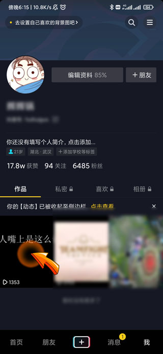 4、最后点击页面底部的“置顶”图标,即可将该视频放置在主页最上方。