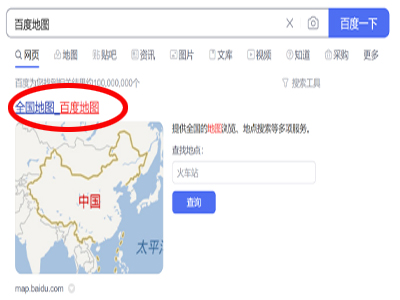 1、打开浏览器,搜索“百度地图”,进入百度地图。