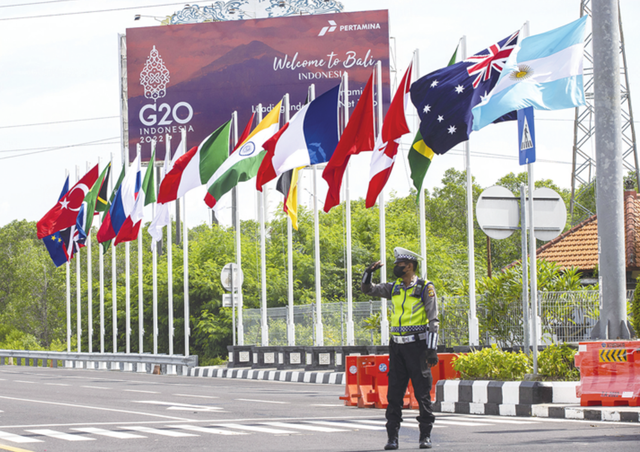 13日,当《环球时报》记者抵达巴厘岛时,这座太平洋上的热带岛屿已经进入“G20时间”。从机场出口到峰会主会场,“共同复苏、强劲复苏”的标语和各种富有当地特色的G20标识随处可见。