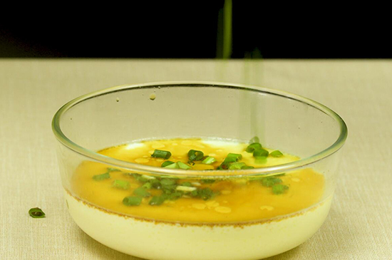 4、放入蒸锅上蒸10分钟左右,蒸熟后放入生抽和香油,再撒上葱花,美味的炖蛋就做好了。