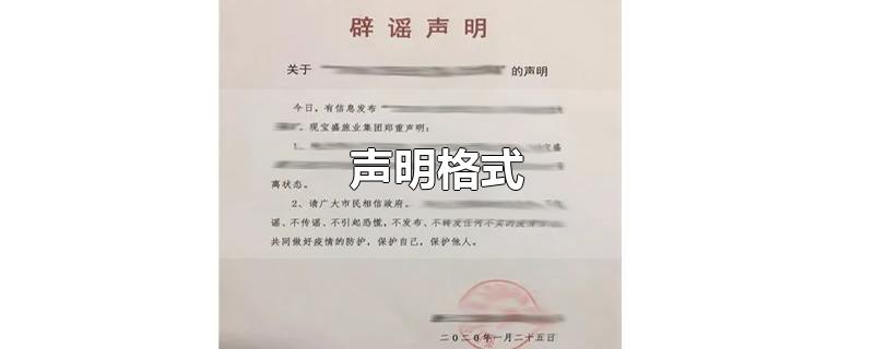 声明格式一般为:标题、正文和尾部。标题可以只写“声明”二字,也可以由事由和文种构成,比如“遗失声明”,正文需要简明扼要地写出发声明的原因,尾部包括署名、时间等。