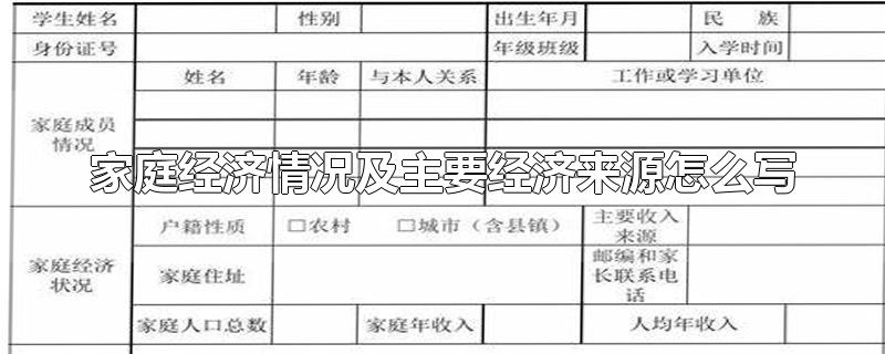 家庭经济情况可以写:差、一般、良好或优越,家庭主要经济来源主要填写家庭工资的来源,主要是指父母从事什么职业,可以写务农、经商、工资(务工)等。