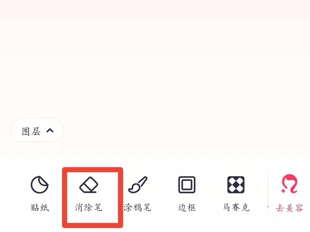 3、选择素材并点击,对准有马赛克的部位进行擦除,最后点击“√”即可完成。