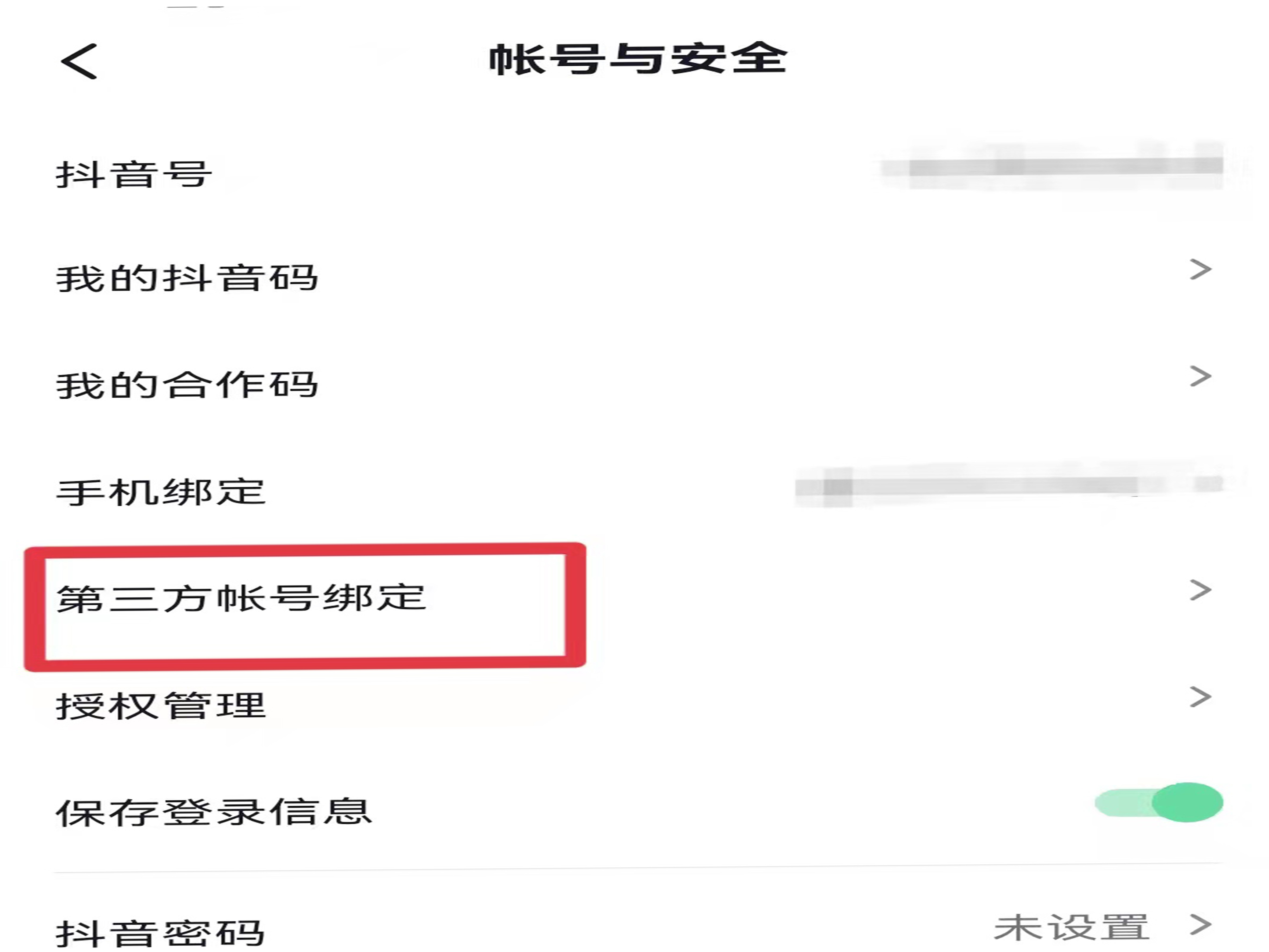 3、在设置界面点击“账号与安全”,选择“第三方绑定”。