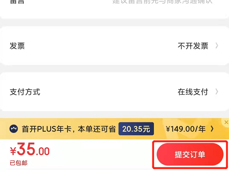 2、点击立即购买后,下方的支付方式选择在线支付,再点击提交订单。