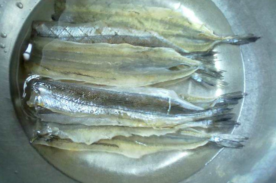 2、把咸鱼放置水中浸泡30分钟最好泡软,去除鱼鳞、鱼头、鱼尾。