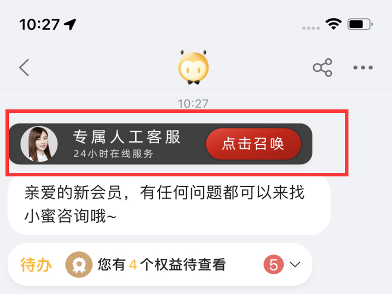 3、点击上方的“专属人工客服”,召唤出人工客服。