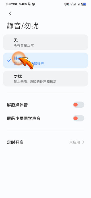4、最后点击页面中的“静音”选项即可关闭手机充电提示音。