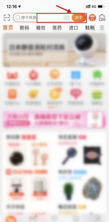 1、打开淘宝,点击“搜索”。