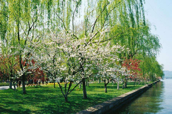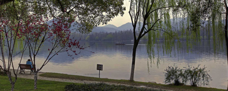 在西湖东岸钱王饲门前水池北侧约50米的滨湖一带,以观赏湖中的柳林景观为主。