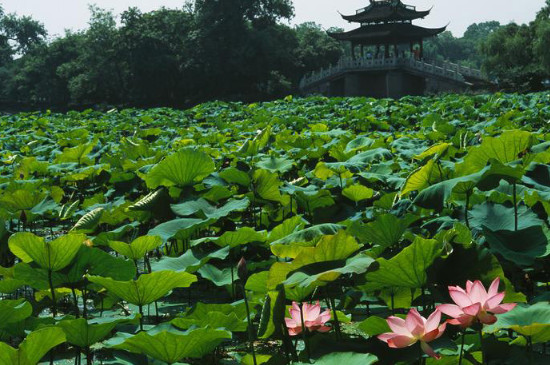 位于西湖北岸苏堤北端西侧22米处,范围0.66公顷,主要以观赏荷叶为主题,每当荷花盛开,风景优美,荷香飘溢。