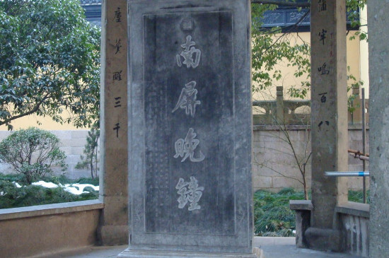 南屏晚钟指的是南屏山净慈寺傍晚的钟声,南屏山在杭州西湖南岸、玉皇山北,九曜山东,傍晚的钟声清越悠扬。