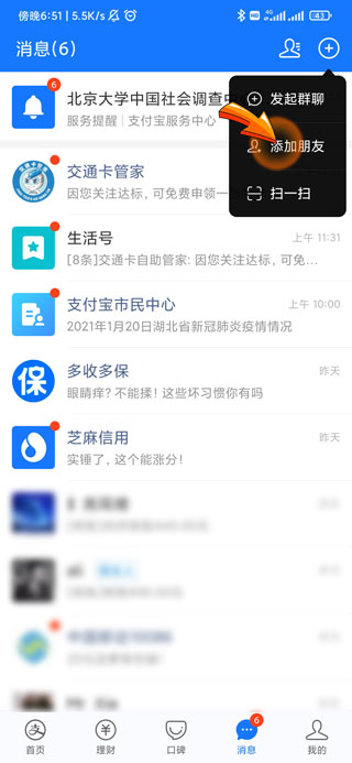 支付宝加好友对方会有提示,支付宝添加好友需要打开支付宝APP,点击下方的“消息”图标,然后点击消息页面右上角的“加号”图标,之后点击“添加朋友”选项,最会点击上方的“搜索栏”图标进行搜索添加。