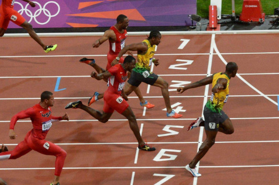 博尔特在冲刺阶段的时候,整个身体都在向前倾斜,这样有一个好处:不仅可以让身体获得往前面跑的惯性;还可以带动腿部的肌肉。因为跑到最后的冲刺阶段,运动员们的肌肉已经处于疲惫状态,所以要将肌肉的潜能逼迫出来。